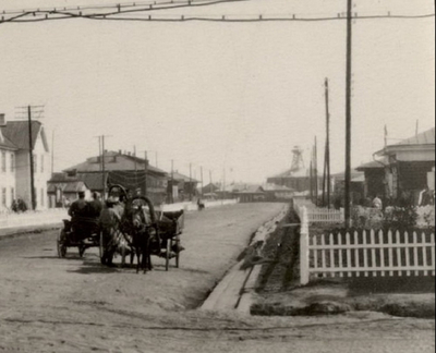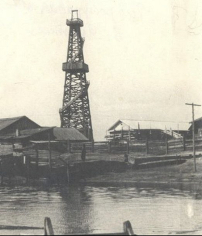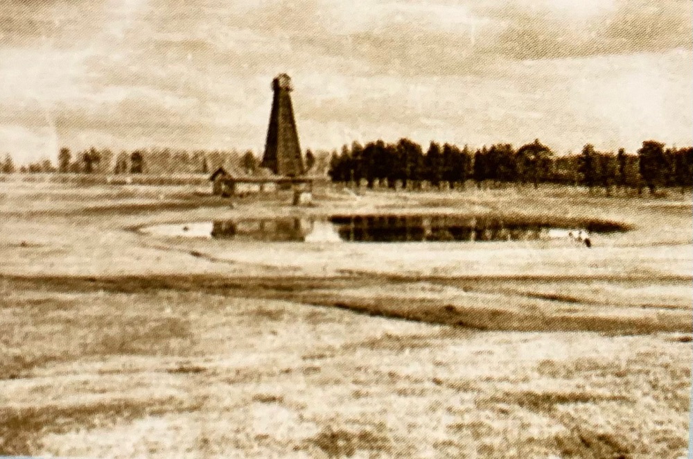 Буровая вышка над скважиной № 2 с артезианской водой в 1943 г.