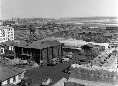 Насосная станция с резервуарной гидробуровой вышкой № 2. Якутск. 1948 г. Вышку поменяли и вокруг новой построили станцию