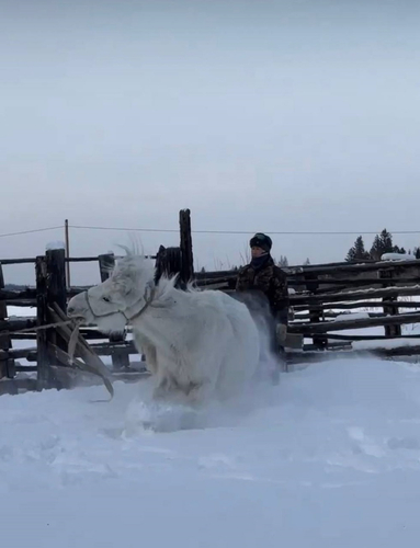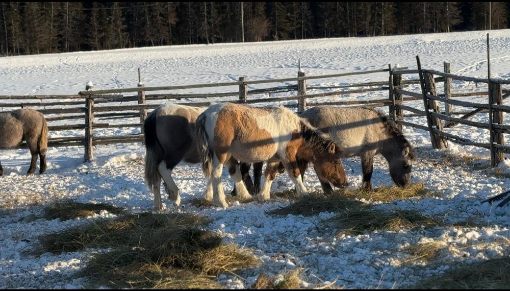 — Недавно был непростой период, когда табун ушел на пастбище, а это далеко от деревни, и мы разлучили на зиму мам с грудными жеребятами. Отделять их — дело очень непростое! Большинство кобыл сейчас «беременяшки», уже вынашивают следующее потомство. Им трудно выкармливать жеребенка, поэтому мы их разделяем. Сейчас большой табун ушел в свободное плавание искать себе самостоятельно пропитание. А жеребята у нас во дворе.