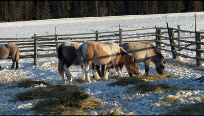 — Да! И они очень умные! По характеру совсем разные, допустим, у нас есть кобылка по кличке Роза. Она ручная, потому что, когда была маленькая, упала в сенохранилище — глубокую яму, которую раньше выкапывали, чтобы хранить там сено. Когда совхоз развалился, ямы остались. Одна из таких ям есть в нашем сенокосном угодье. И маленькая Роза туда провалилась. А когда мы ее вытащили, мать от нее отказалась! Нам пришлось жеребёнка выходить, поэтому она выросла совсем ручной! Отзывается на свое имя, любит рафинад. И у Розы очень сильно обострился материнский инстинкт. Больше, чем у остальных кобыл. Может, мне так кажется, но она больше других кобыл забоится о своих детях.