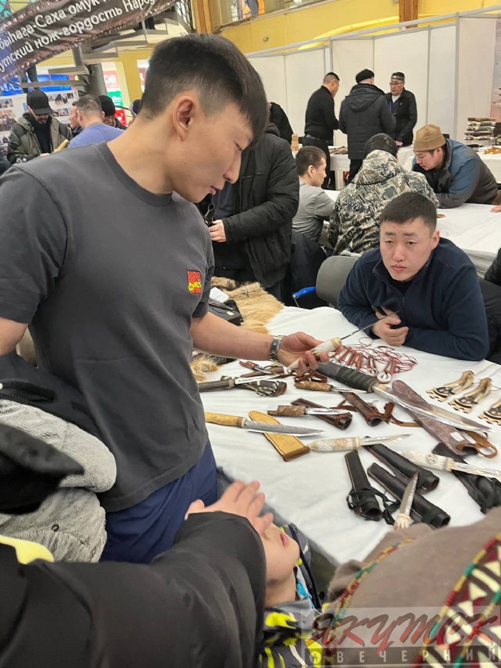 Между продавцами и покупателями шел активный непрекращающийся деловой разговор: «Кто? Откуда? Когда? Из чего?» Знающие толк в ножах мужчины охотно обменивались информацией, телефонами, лайфхаками. Складывалось впечатления, что здесь не выставка-продажа, а всеякутский слет единомышленников по увлечениям. А как же? Весенний сезон охоты на носу! Кстати, некоторые ножи о вовсе не продавались: экспонаты Таттинского этнологического музейного комплекса «Мандар Уус» привезли исключительно ради экспозиции.