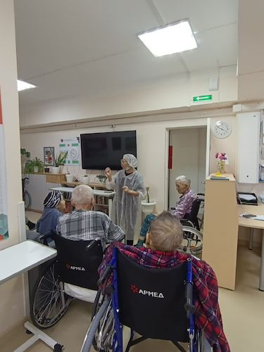 — Родным нужно написать по телефону 8-914-277-74-29, записаться на прием. Мы отказываем, если болезнь уже в тяжелой стадии. Есть очередь. Сейчас записываем на 2026 г. Прежде чем попасть на интенсив в студии, пациент проходит всестороннее обследование, сдает анализы, общается с психологом, неврологом, проходит тесты. Мы определяем когнитивный статус и потом уже решаем, может ли пациент посещать студию. Если пациент не может посещать занятия (маломобильный), то к нему могут приходить на дом. Это выездной формат Студии когнитивного здоровья. Такое тоже возможно.
