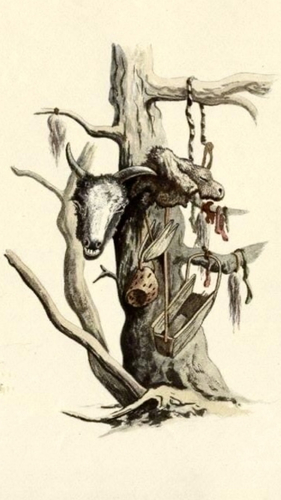 Через много лет после этого мне случилось быть на одном шаманском камлании. Взяв у шамана бубен и ударив по нему палочкой, я попросил предсказать мне. И вот он слово в слово повторил те же проклятия, которые распевало дерево, и сказал: «Ты, оказывается, находил такое дерево. Срубив его, правильно сделал, а то оно прокляло бы, и ты умер бы»».