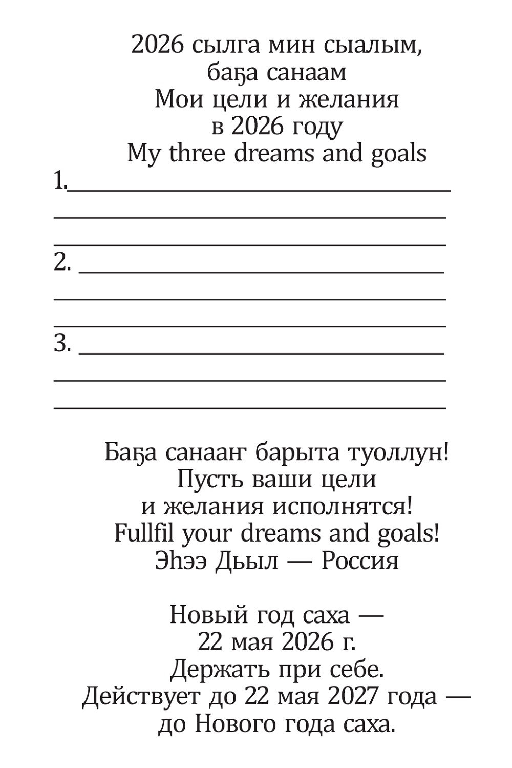 — Во все времена одним из самых важных качеств, необходимых для процветания, было трудолюбие. Именно трудолюбие и выносливость станут теми качествами, на которые стоит опереться в грядущем 2026 году! Вспомните наших предков, которые не только выжили в нашем суровом краю, но и стали процветать, создавать новый мир. Многие молодые люди с пробудившимся сознанием потянутся на исконные земли своих предков, родителей... Медленно, но верно идет пробуждение и осознание того, что выживет только тот, кто имеет свою землю, крепкий дом и семью, где много детей, хозяйство, живность. Например, я от души и всего сердца поддерживаю Масаха (популярный блогер Михаил Масаха, популяризатор традиционных якутских сельских традиций). Он в данное время как яркая звезда на небосклоне, зовет трудоспособных мужчин вернуться в сёла и деревни, оживить наши исконные земли, оставить за собой свою родную землю Саха!