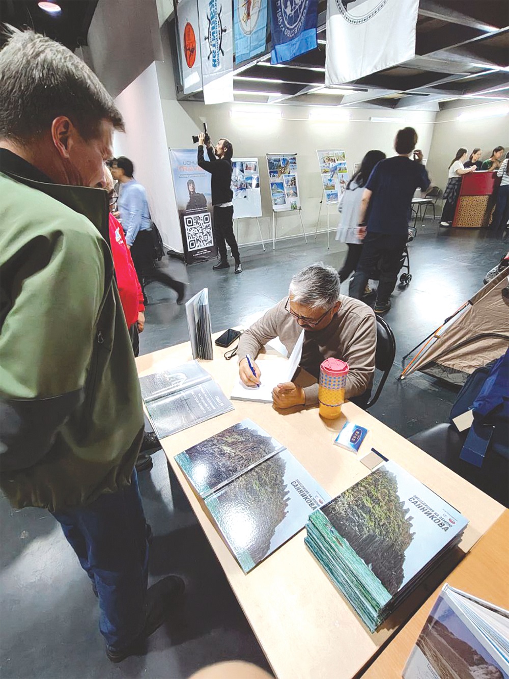 Шла также автограф-сессия, свои книги подписывали два корифея от туризма: Георгий Цыпандин — «В поисках таинственного горного массива» (12+) и Николай Находкин — «Экспедиция на землю Санникова» (12+). Желающих получить подписанную книгу было много, уже в самом начале мероприятия большая часть книг была на руках.