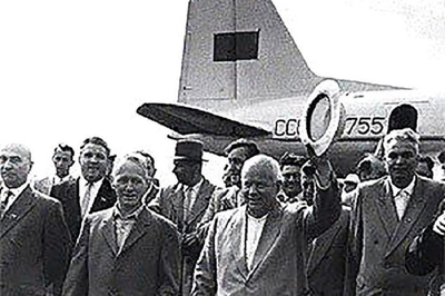 Николай Якубович в своей книге «Неизвестный Ильюшин. Триумфы отечественного авиапрома» утверждает, что летом 1955 года на этом самолете делегация СССР во главе с первым секретарем ЦК КПСС Никитой Хрущевым летала в Индию, Бирму и Афганистан. А вот для своей знаменитой поездки в США осенью 1959 года Никита Сергеевич использовал другое воздушное судно — гигантский дальнемагистральный Ту-114. Визит Хрущева длился 13 дней, за это время он успел посетить Вашингтон и Кэмп-Дэвид, а также Нью-Йорк, Лос-Анджелес, Сан-Франциско, Де-Мойн и Эймс в Айове. Когда он прибыл на военно-воздушную базу «Эндрюс», американцы не нашли подходящего по высоте передвижного трапа, по которому генсек и сопровождающие его люди смогли бы спуститься вниз. Тогда к борту подогнали пожарную машину, и делегация СССР сошла на землю по ее выдвижной лестнице. В той поездке Хрущева сопровождали жена Нина Петровна, несколько членов его семьи, писатель Михаил Шолохов, министр иностранных дел Андрей Громыко и другие официальные лица.