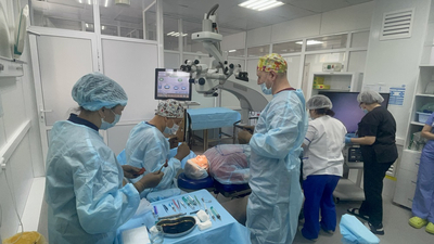 Все манипуляции хирургов транслируются в режиме онлайн на специальном экране. Это позволяет делиться опытом с другими центрами. А всё благодаря новейшему оборудованию, которое закупила больница. По словам главврача, современные микроскопы позволяют делать операцию как на переднем отрезке глаза, так и на заднем — на сетчатке. Оборудование импортное, к счастью, санкции не сильно затронули медицину.