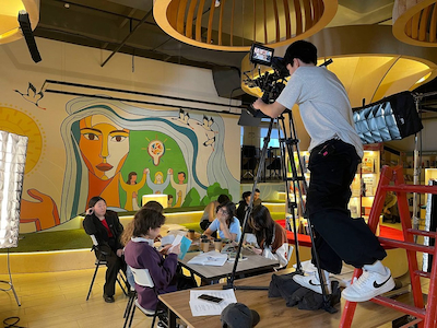 — Слушай, это не поворот, наверное... а еще одно направление внутри кружка. Журналистика остается одной из профориентаций. Когда детей в кружке стало достаточно много, мы смогли снимать проекты, выходящие за рамки школы. Так у нас родилась и до сих пор живет передача «Звездная перемена». Тут дети снимают и интервьюируют наших звезд. Это очень мощно развивает детей и как съемочную группу, и как ведущих, которые преодолевают свои страхи и на равных общаются со звездами.