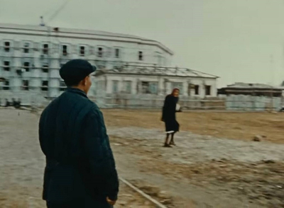 ГорЗАГС на фоне строящегося здания ЯФАН. Кадры из х/ф «Письмо из Сибири» (1957)