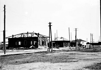 Здание это было Г-образным, вроде. Крыша была железной, то бишь покрыта жестяными листами.