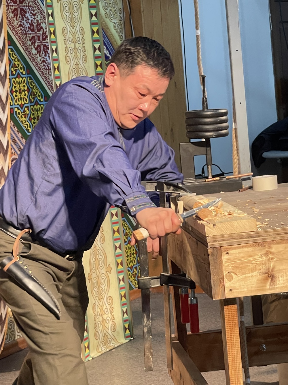 По итогам конкурса первое место, как мы уже сообщали, занял Николай Костромин. Между прочим, в прошлом году во время фестиваля «Зима начинается с Якутии» он стал победителем конкурса «Саха быhaҕa — якутский нож». Участники там раскалывали ножами лед, пилили брусок дерева, разрезали войлок, стругали свежезамороженную рыбу и резали бумагу. И на том же конкурсе кузнецов вторым стал Александр Михайлов из Намского улуса. На этот раз он снова уступил победу Костромину. Зато в прошлом году вместе с женой они победили в конкурсе «Строганина-2025». Третье место в «Битве клинков» занял Василий Макаров из села Тюнгюлю Мегино-Кангаласского улуса. В общем, делаем вывод, что лучшие ножи изготавливают мастера из Мегино-Кангаласского и Намского улусов.