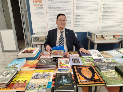 — Сейчас на пенсии. Ранее работал в Верхоянске заместителем директора средней школы по внеклассной и воспитательной работе, был завучем; потом работал старшим референтом 12 лет. Сейчас занимаюсь творческой работой: пишу книги, участвую в мероприятиях, как эта ярмарка, продаю и показываю издания, значки, открытки, общаюсь с коллегами. Расширяю свою библиотеку.