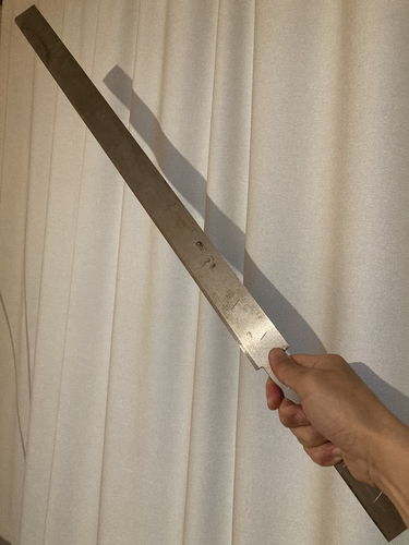 Образчик недоделанной заготовки муҥур болот. Выведены спуски с обоих ребер клинка