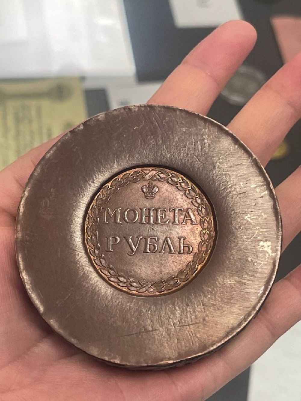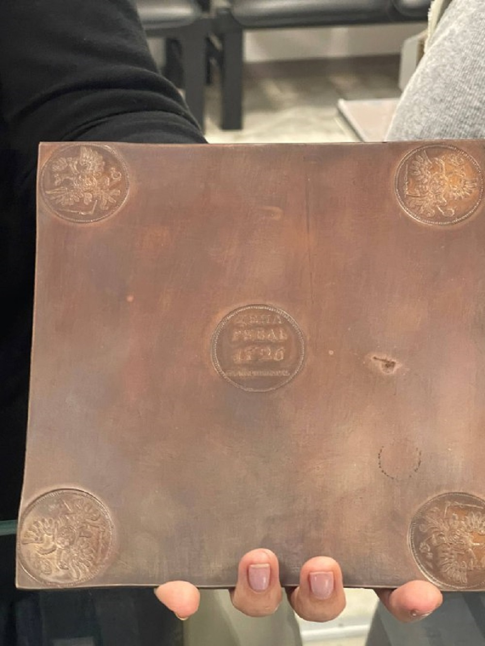 Там вам покажут самые первые монеты на Руси, царские банкноты «катеньки» и «петеньки» и многое другое. При желании можно даже потрогать эти экспонаты. Взять в руки, к примеру, огромную монету из меди, которая чем-то напоминает шайбу. Пожалуй, самый тяжелый экспонат из монет — это квадратной формы рубль 1726 года.
