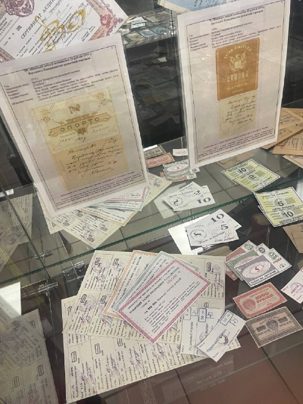 Часть экспонатов в музее — копии, но есть и оригиналы, которые бережно передали в дар коллекционеры. Здесь также можно увидеть настоящую полковую кассу в виде огромного сундука с замками. Раритет конца 19 века весит 80 килограммов. Он сохранился в первозданном виде с естественным износом и тем ценнее выглядит. Также интересна экспозиция рабочего стола кассира со всеми приспособлениями для счёта монет и банкнот. Из современного посетители могут увидеть денежную обрезь и узнать больше об утилизации ветхих банкнот. В общем, заглядывайте в музей, где специалисты отделения для вас проведут интересную экскурсию.