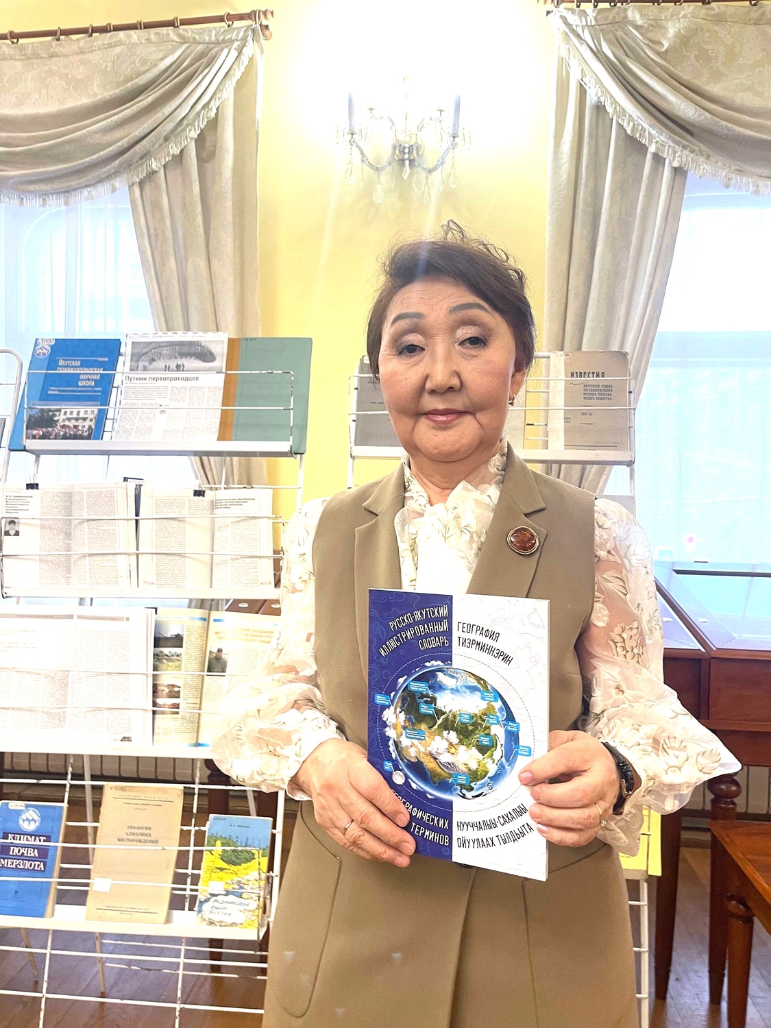 Книжным издательством «Айар» издан новый русско-якутский иллюстрированный словарь географических терминов. Автор-составитель — заслуженный учитель Республики Саха (Якутия), почетный работник образования РФ, учитель географии Якутской городской национальной гимназии, старший преподаватель Института развития образования Тамара Михайлова. Два года назад издательство обратилось к ней с предложением поработать над созданием словаря. Глоссарий может стать настольной книгой для школьников, студентов и учителей, а также для всех, кто увлекается географией.