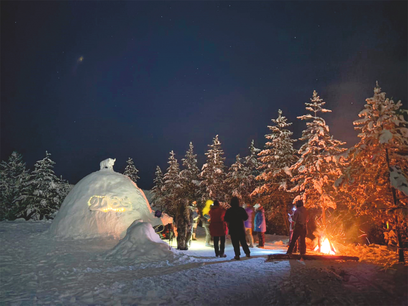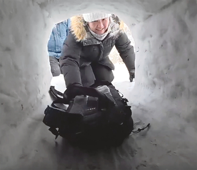 — В прошлом году размеры были такие: наружный диаметр — пять метров, внутренний — около четырех. Высота внутри 2,2 метра, снаружи около 2,5. В прошлом году ночевали одновременно 15 человек. В этом году из-за нехватки снега домики получились маленькие, трех- и пятиместные. Малую хижину построили по новой технологии — монолитной. Строительство получилось трудоемким, но иглу оказалось теплым.