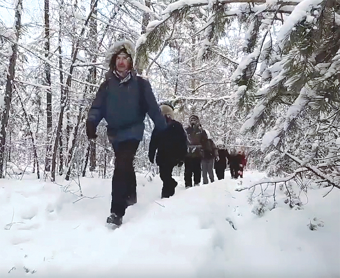 — Немножко расскажу о последствиях, если так можно сказать, зимнего полноценного, полнодневного пребывания на свежем воздухе. Что может быть? Во-первых, из-за обилия кислорода с непривычки вечером может болеть голова. С непривычки могут болеть мышцы ног, потому что мы с вами идём пешком по различному рельефу. Ну и может появиться непреодолимая тяга в следующий выходной снова отложить дела, собраться, взять термос с чаем и отправиться гулять.