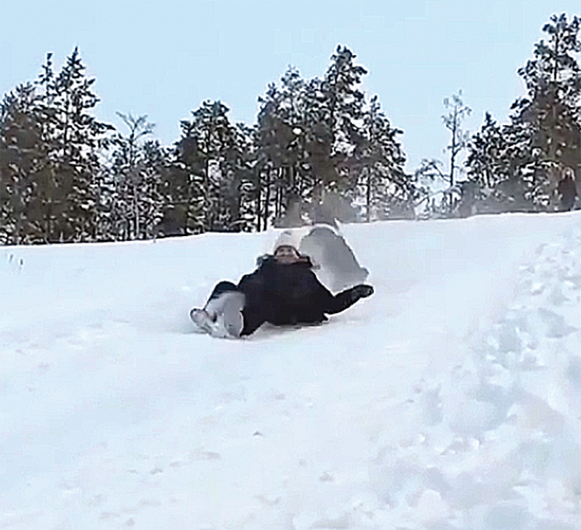 — Краткий инструктаж по технике безопасности пользования таким, казалось бы, простым средством передвижения, как ледянка: Держитесь крепко, садитесь ровно, поднимайте ноги и притормаживайте перед красным сигналом светофора (шутка).