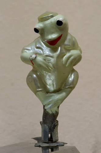 Самой дорогой игрушкой стала «Лягушка с часами» из набора «Золотой ключик». Набор «Золотой ключик» художника К. А. Воиновой состоит из 15 фигурок. Артель «Культигрушка», Ленинград, выпуск 1958 года.