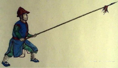Маньчжурский пеший копейщик с цян (копье с гибким древком) типа тасха гида («копье на тигра»)