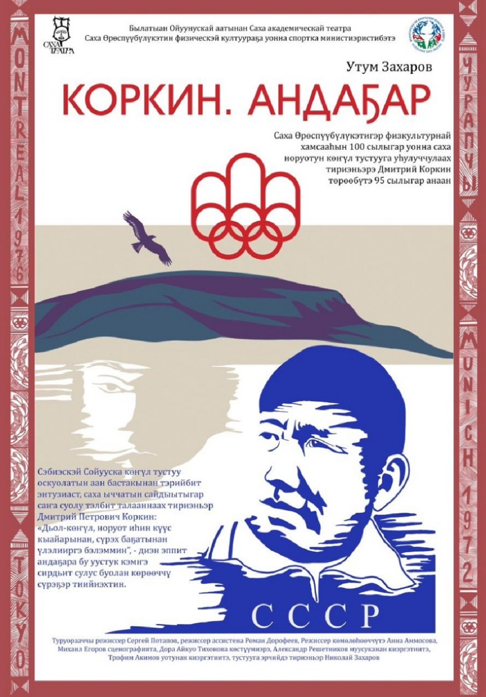 Сюжет строится вокруг легендарного тренера по вольной борьбе Дмитрия Коркина. Да, это тоже «датский» проект, приуроченный к юбилейным мероприятиям прошлого года, когда с большой помпой отмечалось 95-летие Коркина. Тренер с новаторским подходом начинает делать чемпионов. Ему противостоит антагонист, который убежден, что вместо спорта надо больше внимания и средств выделять культуре. Тут, конечно, все считывают шутку режиссера, который, будучи деятелем культуры, не понаслышке знает, что такое негласное соперничество между спортивными и культурными отраслями существует всегда, «берет сторону» спортсменов. Есть также защитник позиции Коркина — партийный функционер, болеющий за спортивные достижения республики. Тоже фигура достаточно реалистичная по форме и понятно, что комическая по содержанию — даже в советские времена партийные бонзы никогда не были активными героями на сцене.