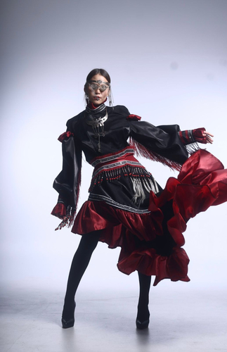 — Участвовал с коллекцией «Вдохновение» — это стилизованные национальные костюмы народа саха. Два костюма были выполнены в черно-белой цветовой гамме с элементами графики, остальные костюмы выполнены в традиционных цветах. В коллекции использованы авторские украшения художника ювелира Марии Седалищевой — стилизованные и эксклюзивные украшении из мельхиора и латуни, которые отражают красоту природы Якутии и богатую культуру народа саха. Источником вдохновения стали графические рисунки художников, традиционные национальные костюмы, а также явления красоты природы.